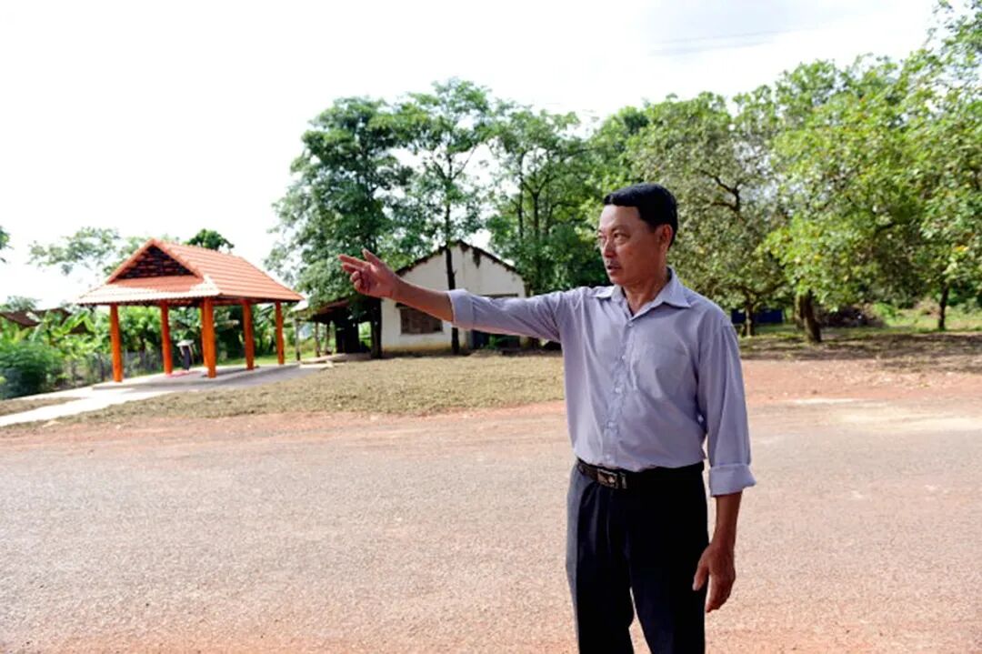 2015年,阮文雄在越柬边境手指老洪等人当年越境处讲述昔日往事。