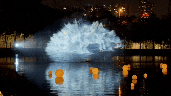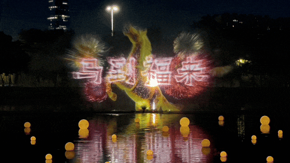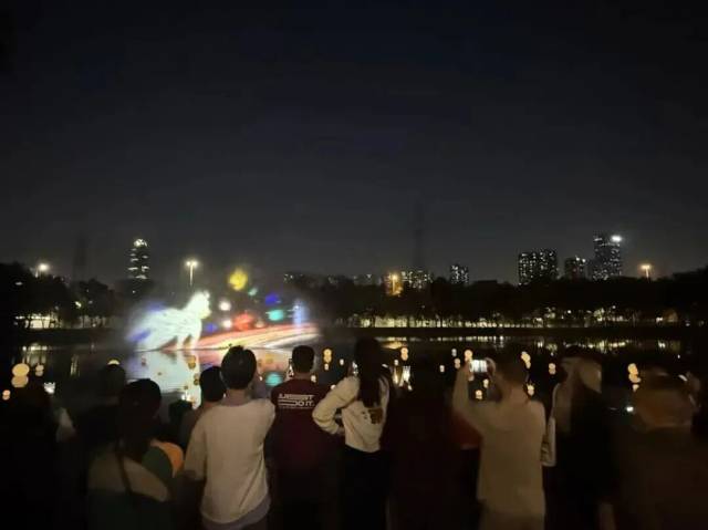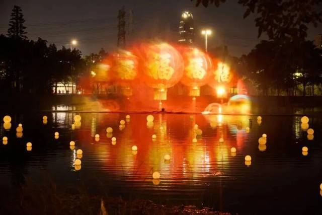 当暮色降临,前海公园芦趣湖面便化身为一座露天水幕影院。春节期间,精彩的光影故事每晚在此准时上映。水幕与灯光交织,带来如梦似幻的夜间视听盛宴。