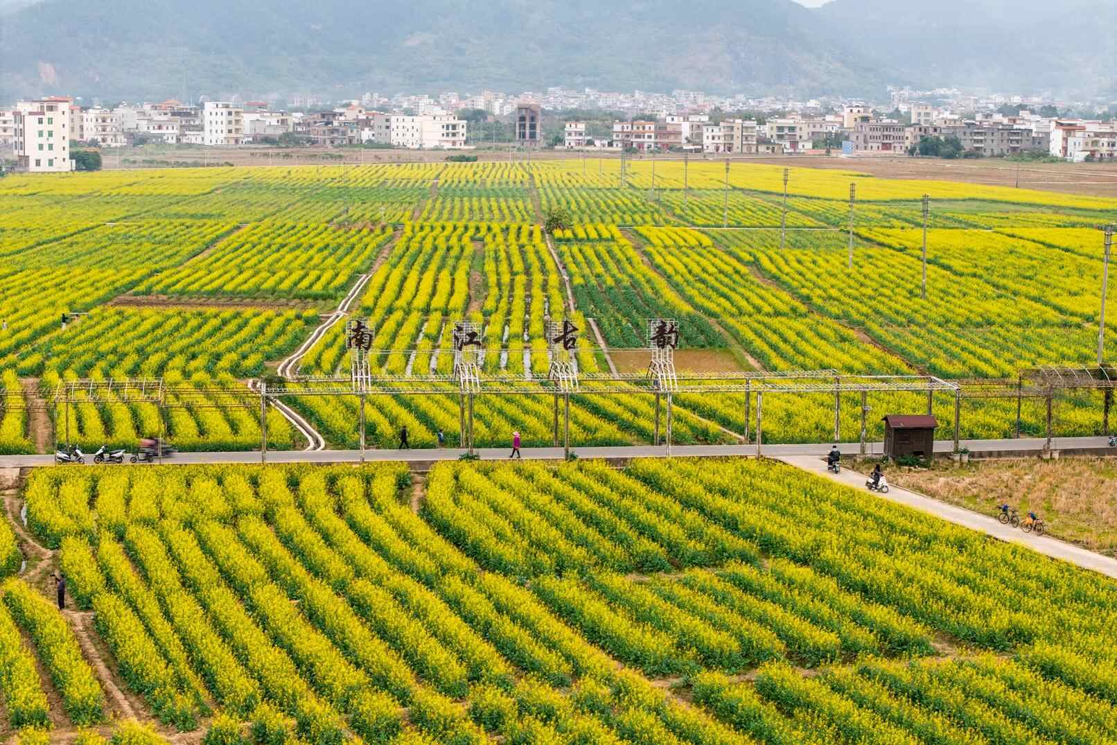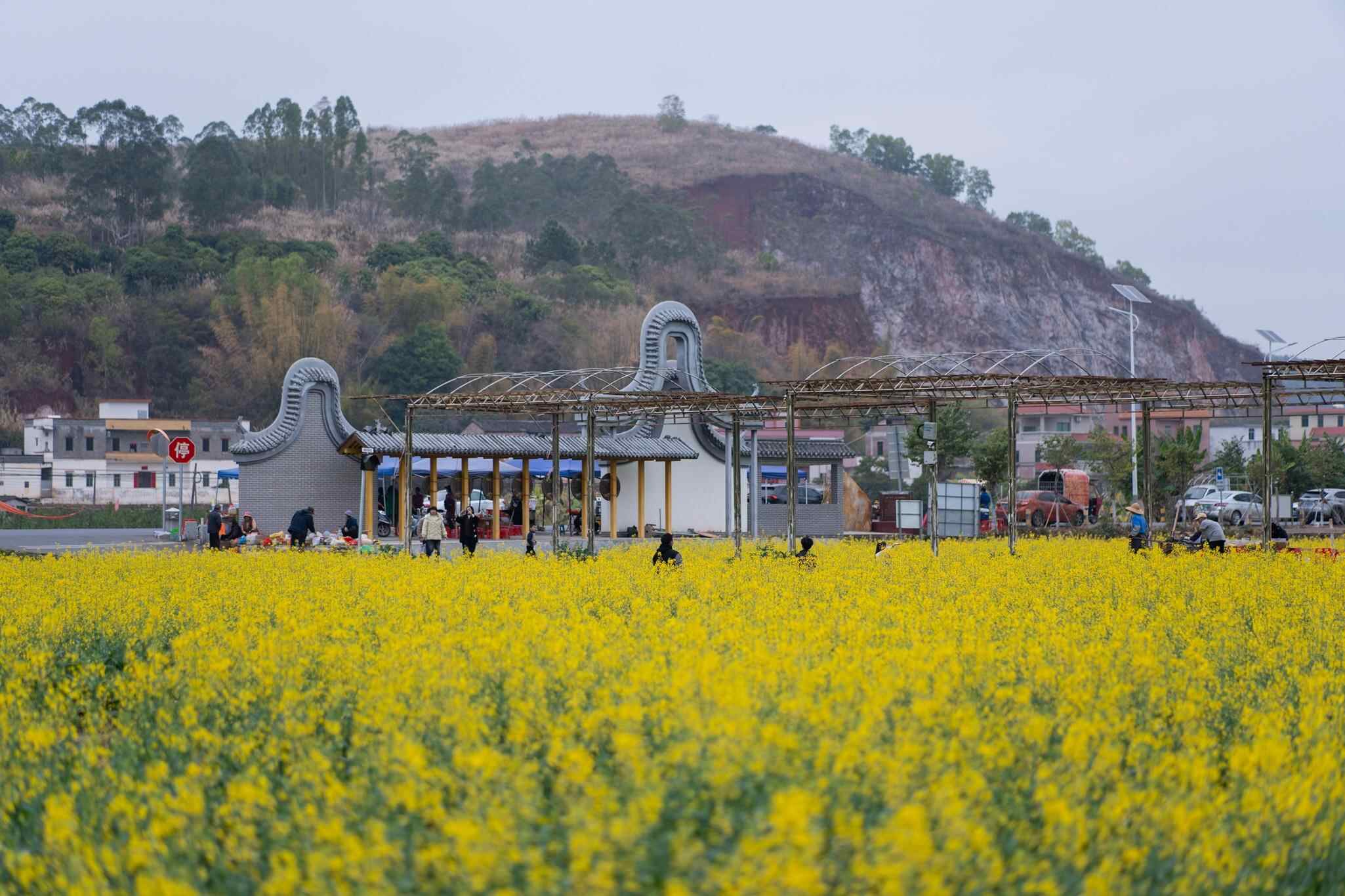 二月底,春风轻拂,云浮市郁南县连滩镇兰寨村被一片金色的海洋温柔地拥抱着。这是一年中最令人期待的时刻,油菜花迎来了它们的最佳观赏期,仿佛大自然精心布置的一场视觉盛宴,邀请着四面八方的游客与摄影爱好者共赴这场春天的约会。