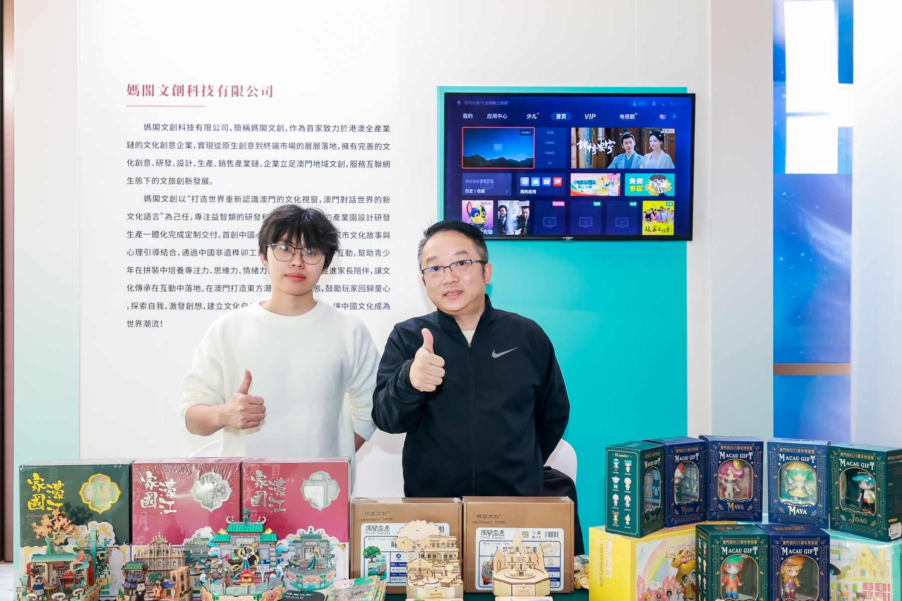 今年文投会上,来自澳门的妈阁文创科技有限公司专门在会场外设置了企业展位,带来了来自澳门的潮玩手信——男女公仔组成的“潮游澳门”系列、“濠江家园”DIY八音盒系列。这家公司去年从澳门搬到了珠海保税区,建立起自有生产工厂、研发中心。