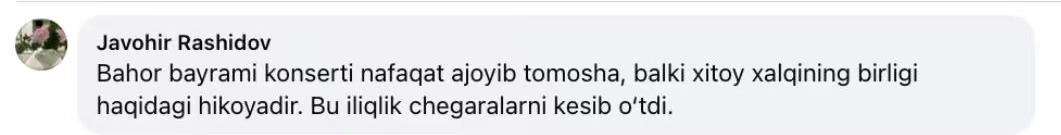 乌兹别克斯坦网友贾沃希尔·拉希多夫:春晚不仅是精彩表演,更是中国人团圆的故事,这份温暖跨越了国界。