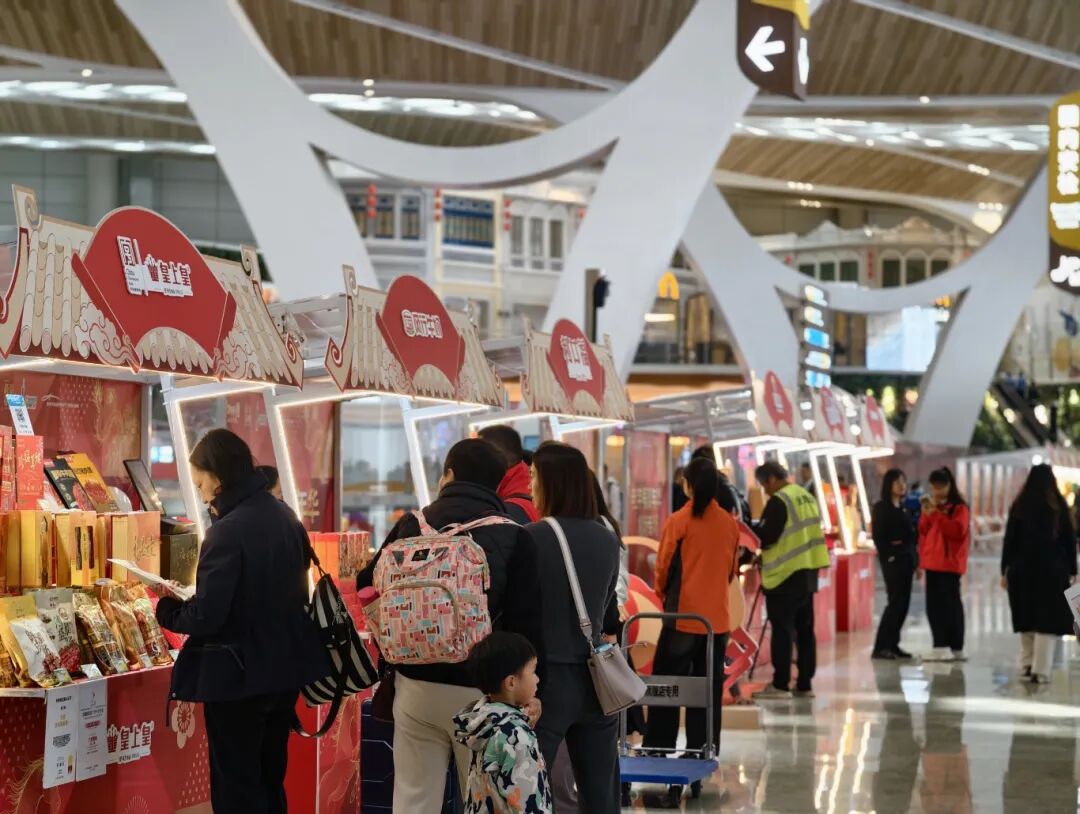 T3航站楼全新打造的广货市集人气爆棚,广式腊味、老字号糕点、“大湾鸡”主题文创等特色产品集中亮相,旅客既能现场品鉴岭南风味,也能随手选购伴手礼。“把广东年味带回家”,成为这个春运白云机场最温暖的注脚,也让“请到广东过大年”的邀约,随千万旅客飞向全国各地。