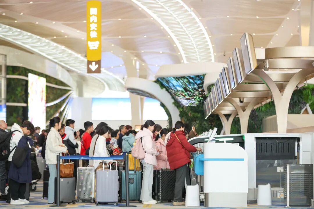 春运期间,T3航站楼全流程自助服务系统高效运转,60台自助值机设备、安检21台双门自助核验设备持续发力,59台人工/自助可转换设备根据客流实时切换,让旅客值机、安检平均等候时间显著缩短。“第一次在新航站楼坐飞机,自助办理特别快,航站楼很漂亮,身处其中都是一种享受。”来自湖南的旅客张先生对T3连连点赞。
