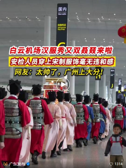 T2、T3航站楼的汉服执勤,刷频各大平台热搜榜。T2航站楼的“宋服卫士”身着宋代形制服饰,以优雅的叉手礼致意,用“客官,这边请”的古风问候做引导,让严肃的安保环节多了一份温柔与庄重,不少外国旅客主动上前合影,感受中华传统文化的魅力。T3航站楼防爆检查工作人员身着唐装,圆领袍衫配织锦纹样,襦裙搭飘逸披帛,广袖轻拂间尽显风雅。