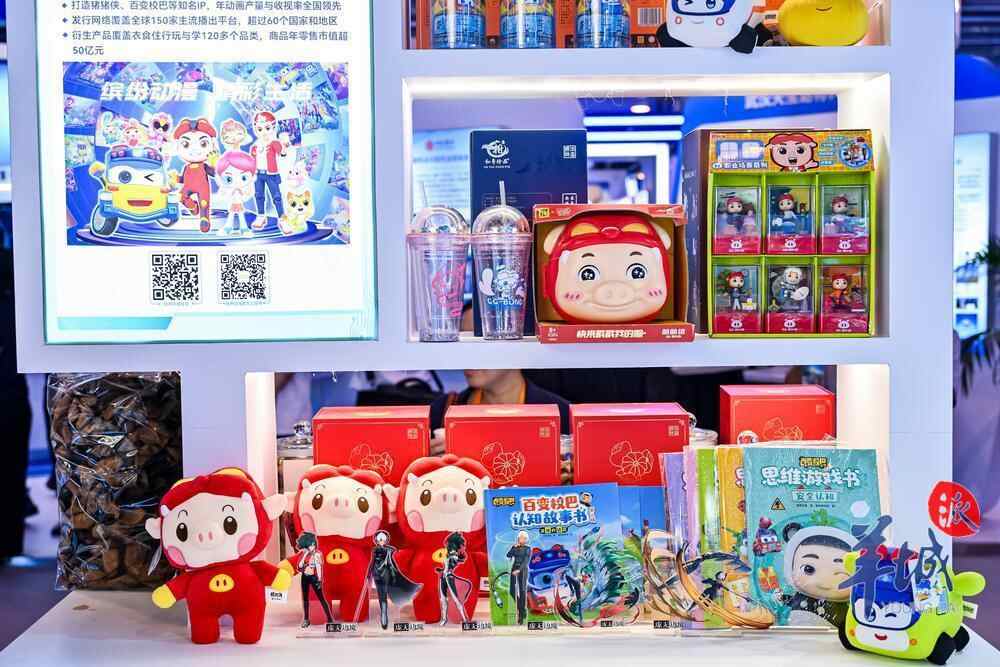 在文化贸易展区,广东咏声动漫股份有限公司等6家企业展现了文化与科技、创意设计的融合成果,体现广东文化的传承与创新。现场,咏声动漫的《猪猪侠》《落凡尘》《百变校巴》等动漫衍生品十分吸睛。