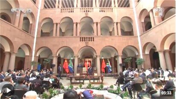 当天中午,习主席在比勒陀利亚总统府同拉马福萨总统共同会见记者。拉马福萨还在总统官邸为习主席举行了欢迎宴会。