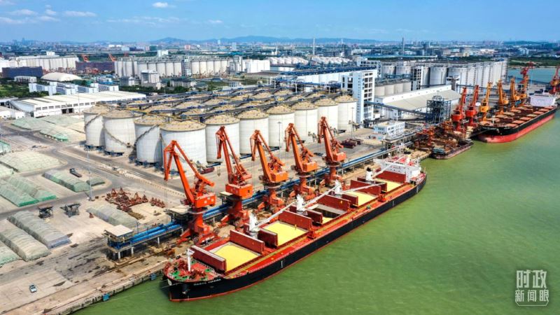 △从南非进口的首船饲料玉米靠泊中国广东麻涌港。(资料图)