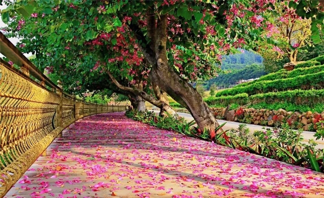 For a change of pace, head to Yearning Tea Plantation in Yanyang Town. This 5A-rated national tourist spot is a tea lover's paradise. Surrounded by rolling hills and blooming flowers, the area is famous for its smooth, fragrant Yannanfei tea. With its year-round spring-like climate, this scenic escape offers Hakka song and dance performances, local cuisine, tranquility, and beauty.
