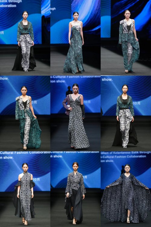 回溯合作历程,自2023年7月两校签署合作备忘录后,本次时装发布会已成为双方深化创意纽带的里程碑之作。历时两个月匠心筹备,合作团队先于吉兰丹实践工作坊开展技艺研习,随后由中国设计师团队完成创意转化,全程以“以匠心守非遗,以设计连世界”为共同愿景,成功让古老蜡染技艺在当代时装语境中焕发新生。