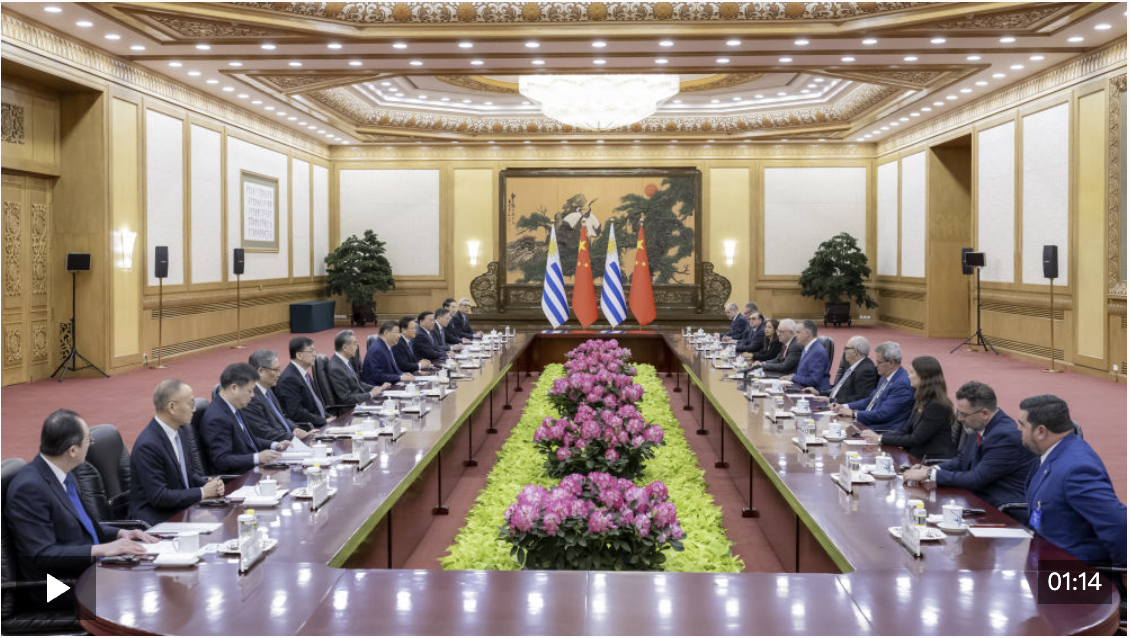 奥尔西说:“尊敬的习近平主席阁下,乌拉圭高度重视此次对华国事访问,这也体现在我们派出了很高级别的代表团。今天恰逢两国建交38周年,两国的全面战略伙伴关系正处于历史最好时期。乌方有意进一步深化双方在各领域的合作。”