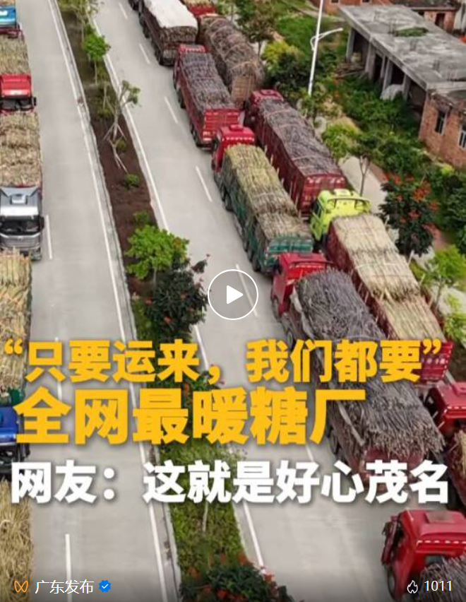 有网友称化州耀明糖业为“全网最暖糖厂”,一方面,老板承诺来者不拒,各地滞销的甘蔗都可以送来此处收货;另一方面,由于数百货车同时涌向化州,不少货车进厂需要排队等候,有些车一等就是两三天,糖厂发现司机有这个困难后,就由公司出钱为货车司机们准备了一人三餐和饮用水,还设置了临时厕所,让大家都有了基本保障。