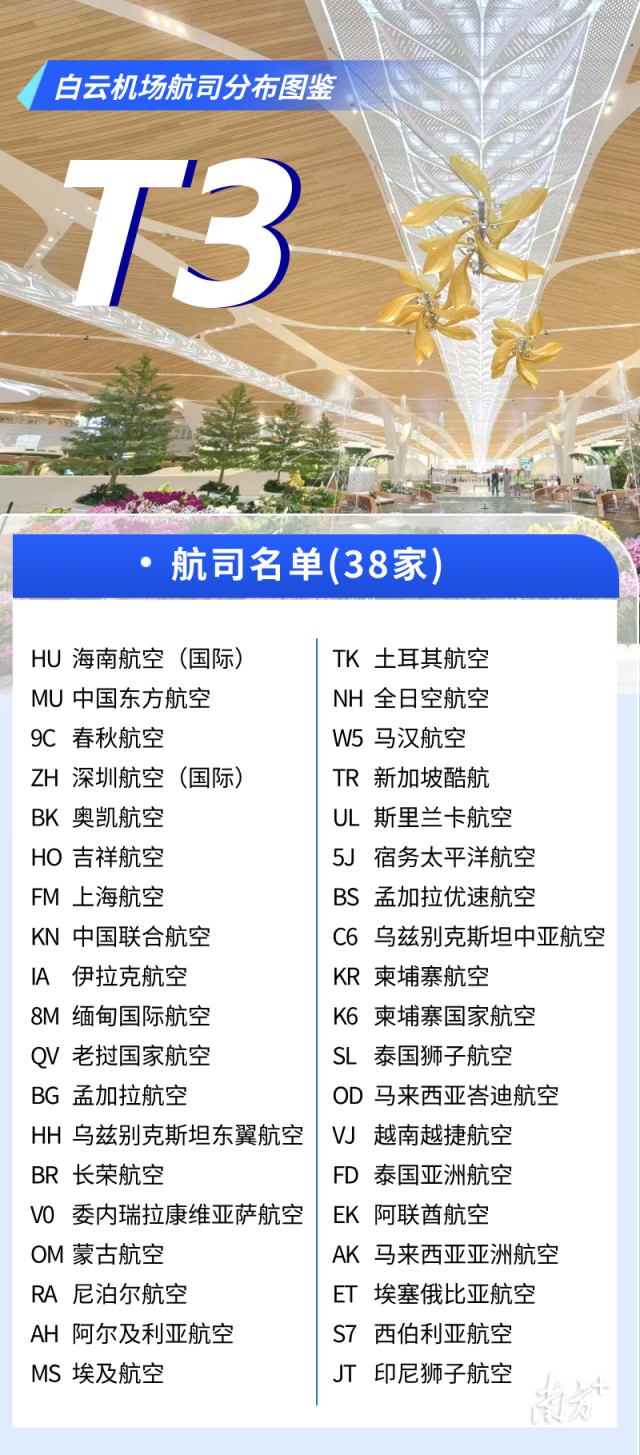 1月22日起,广州白云国际机场T3航站楼迎来第二批航司集中入驻,所有原来在T1航站楼运营的国际(地区)航班以及春秋航空的国内航班转场至T3航站楼保障,标志着T3国际业务全面开启。