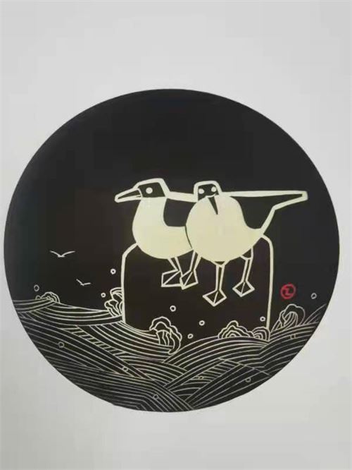 赵宗彪的木刻看起来只有寥寥几刀,手起刀落,干脆利落,但构思却很巧妙,可以说,简约而不简单,这个点这条线,刻在哪里,用阴刻还是阳刻,用粗的还是细的,怎么布局,都不是随便的,都有着艺术的处理。在以前,木刻是匠人,在现代,赵宗彪如果是个匠人,那么就是一个哲匠,刻着对生活和世界的思考。这种思考,通过一把刻刀一块木头很轻松的表达了。