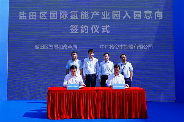 鹽田區發展改革局和首批入園意向企業代表簽訂入園意向書,雙方將合力將鹽田區打造成為氫能高科技產業高地、氫能技術研發高地和氫能示範應用高地。深圳氫時代新能源科技有限公司首席科學家劉科代表意向入駐企業致辭,他表示,國際氫能產業園的落成將為氫能產業在鹽田區的可持續發展構建良好的產業生態環境,接下來將繼續積極創新,不斷突破氫能產業鏈上的關鍵核心技術,推動氫能場景示範應用落地,為鹽田區的氫能產業發展而努力,為實現「碳達峰 碳中和」的目標作出應有貢獻。
