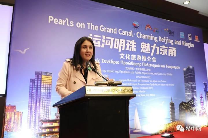 进入推介环节,雅典中国文化中心主任任刃以中国大运河为主题,串联介绍了大运河两端城市北京和宁波的不同风情,与现场嘉宾多次进行互动,引起热烈掌声。