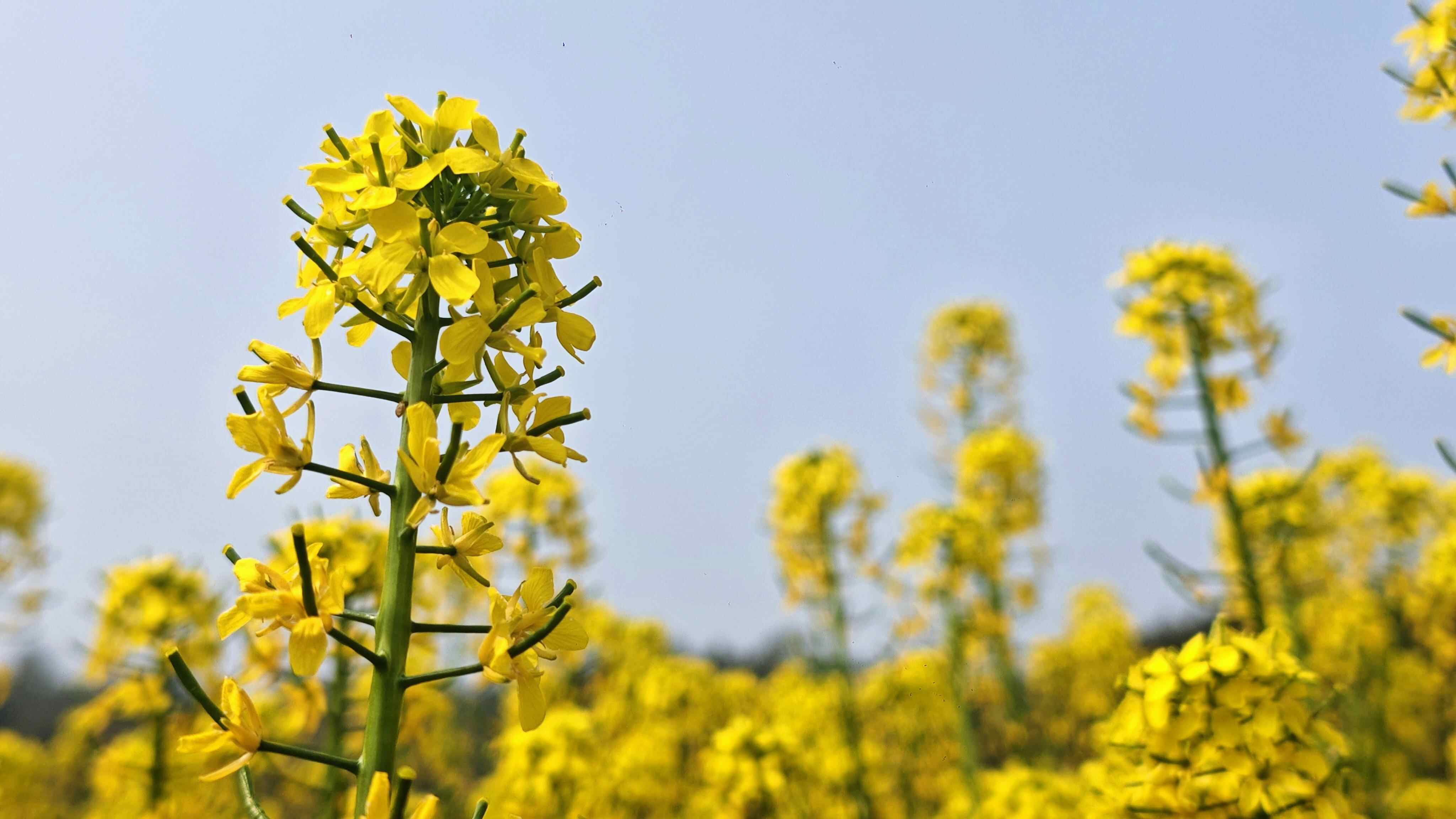 走进花海,浓郁的花香扑鼻而来。一朵朵油菜花小巧玲珑,在微风中轻轻摇曳,仿佛在诉说着春天的故事。