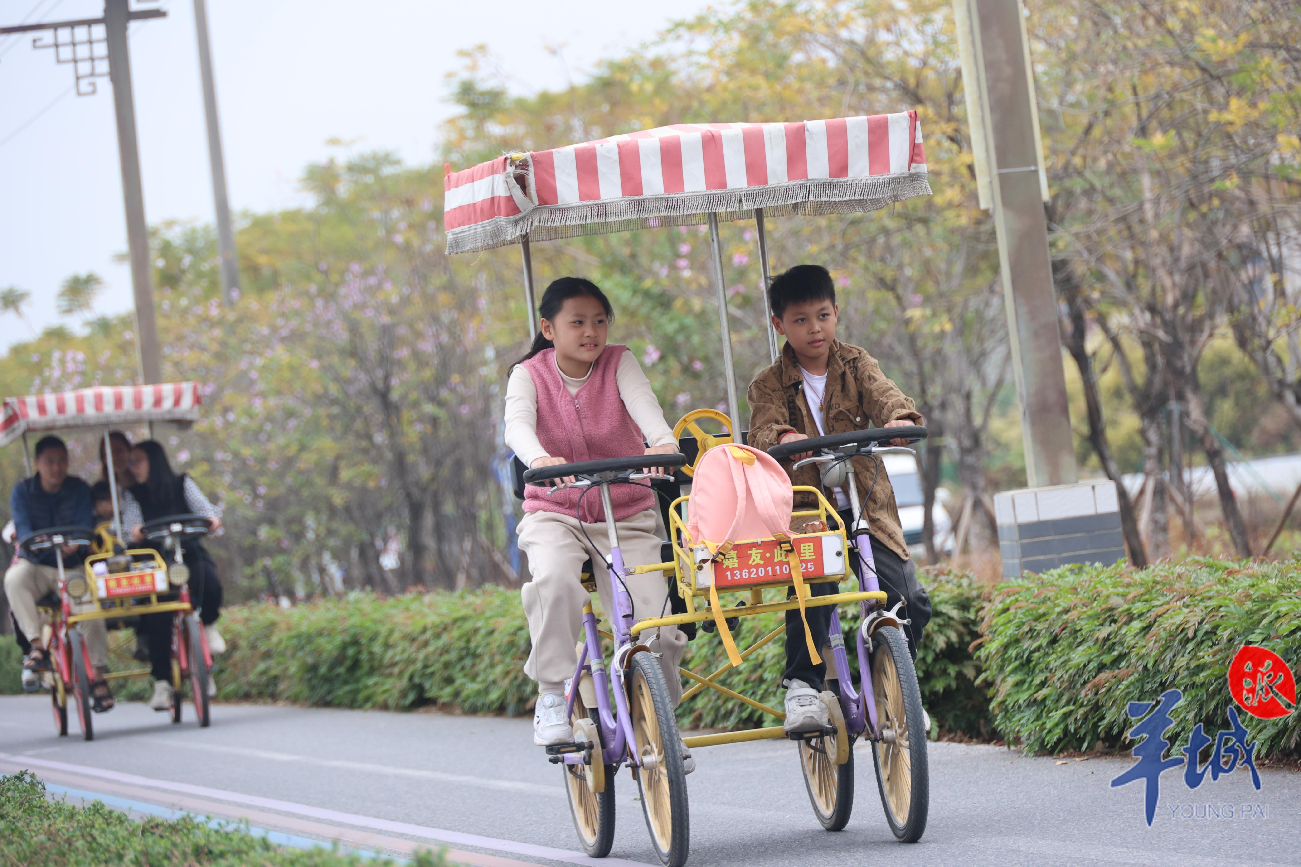 在贤鲁岛骑行的小朋友